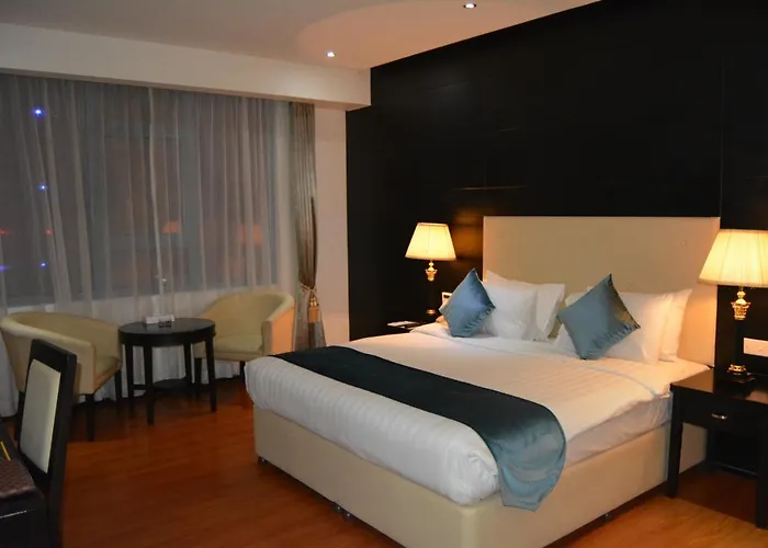 Das 5-Sterne-Nagaworld Hotel & Entertainment Complex Phnom Penh liegt in einer 14 Gehminuten Entfernung vom Königspalast von Phnom Penh, ist mit raumhohen Fenstern ausgestattet und bietet seinen Gästen Annehmlichkeiten wie WLAN und Parkplätze. Das Hotel liegt in einer strategischen Lage in einer Entfernung von 3 km vom Zentralmarkt und verfügt über einen Bankettsaal für elegante gesellschaftliche Momente.